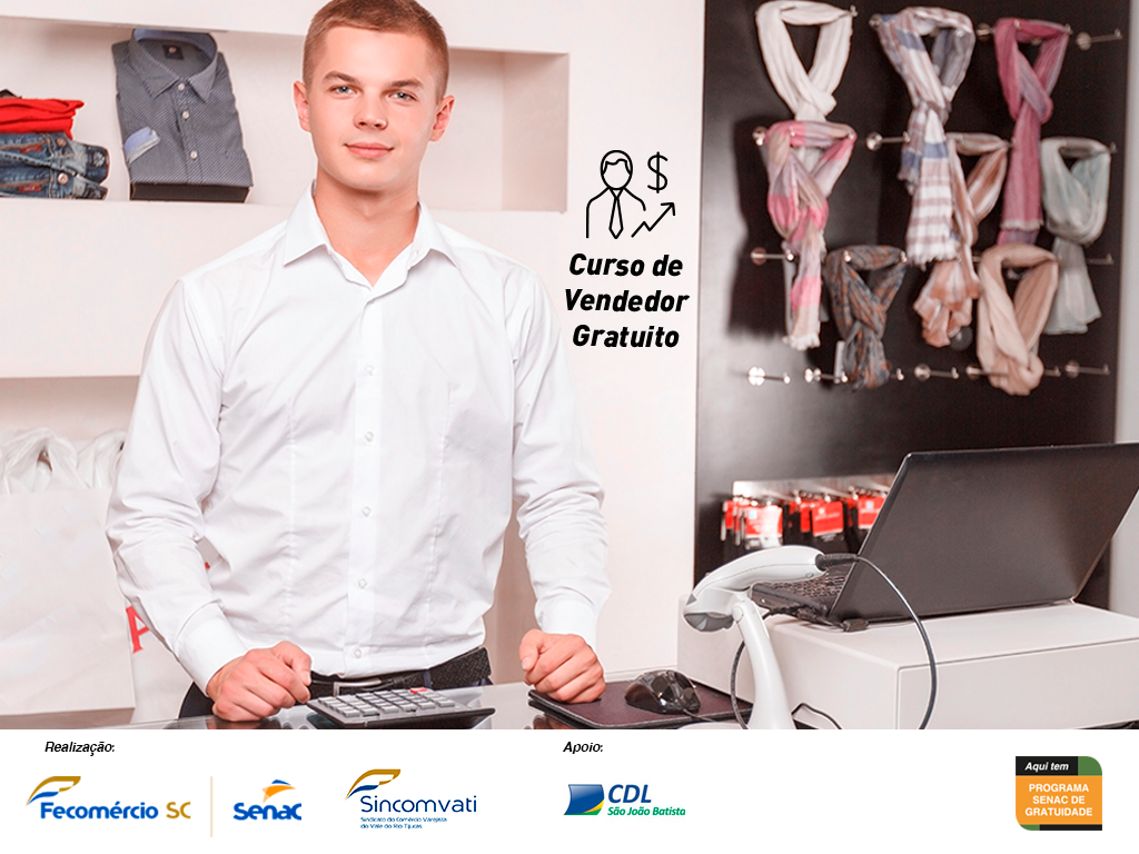 Em parceria com a Sincomvati e o Senac, a CDL de São João Batista oferece o Curso gratuito para formação de vendedores!